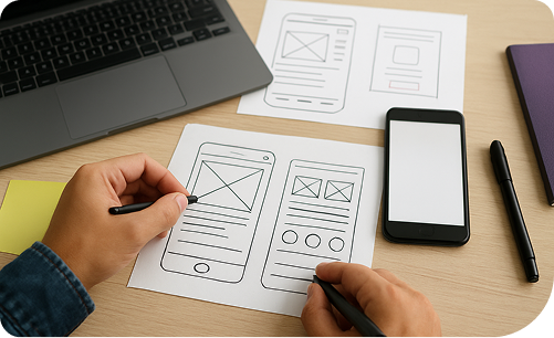 Our design process focuses on creating intuitive, user-friendly, and visually engaging interfaces. We develop interactive prototypes and wireframes to validate ideas before development begins. This ensures a seamless user experience, better usability, and alignment with your brand identity.